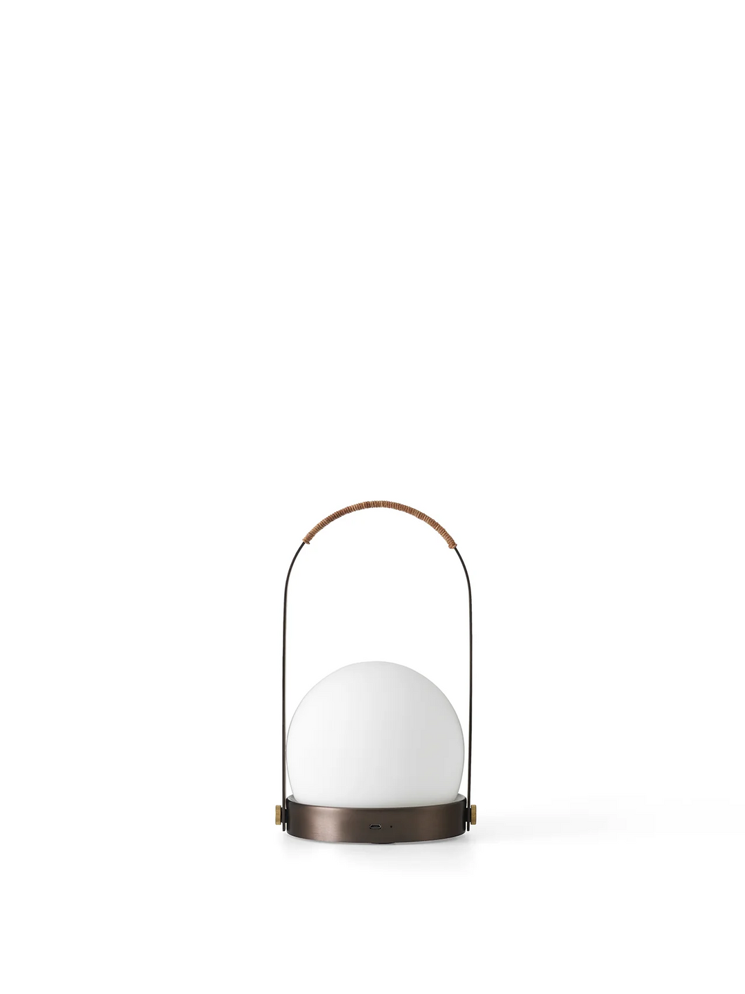 Carrie Table Lamp, Portable, Bronzed Brass | Leather