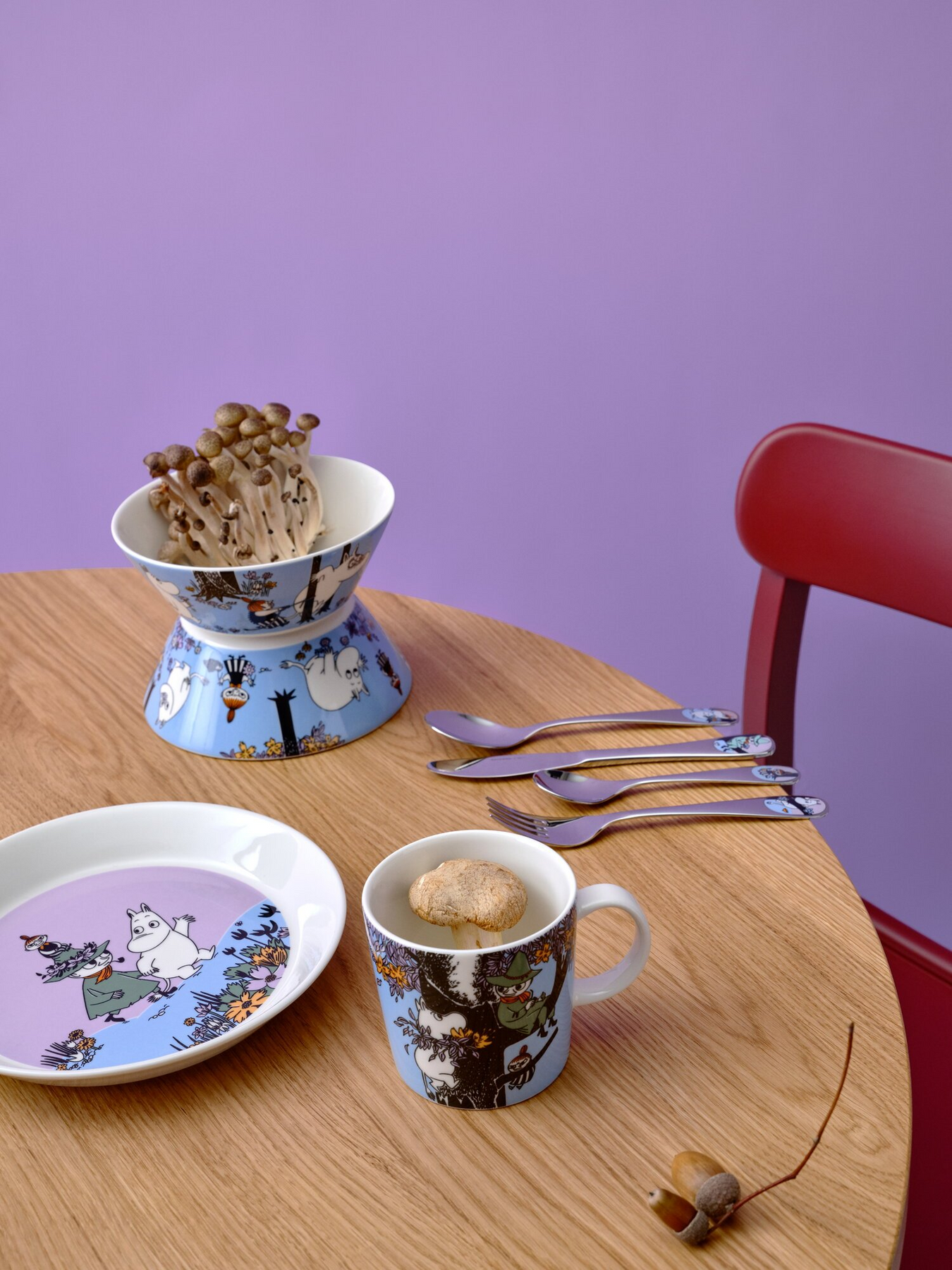 The Friends Forever ceramics capture the unconventional friendship of Snufkin, Moomintroll, and Little My. Snufkin is a wise philosopher, Moomintroll a kind and caring friend, and Little My a fiery, independent fellow with a sharp tongue! They all share the readiness to embark on adventures with friends.