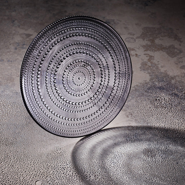 "The Finnish name for ‘dewdrop’ refers to the circles of bubbles in the pressed glass. Inspired by Finnish nature, the dewdrops glisten like a string of pearls on grass in the morning sun. Oiva Toikka’s love for experimentation led to the creation of an entirely new droplet design for Kastehelmi. The resulting surface structure brings out the living, reflective beauty of the glass."