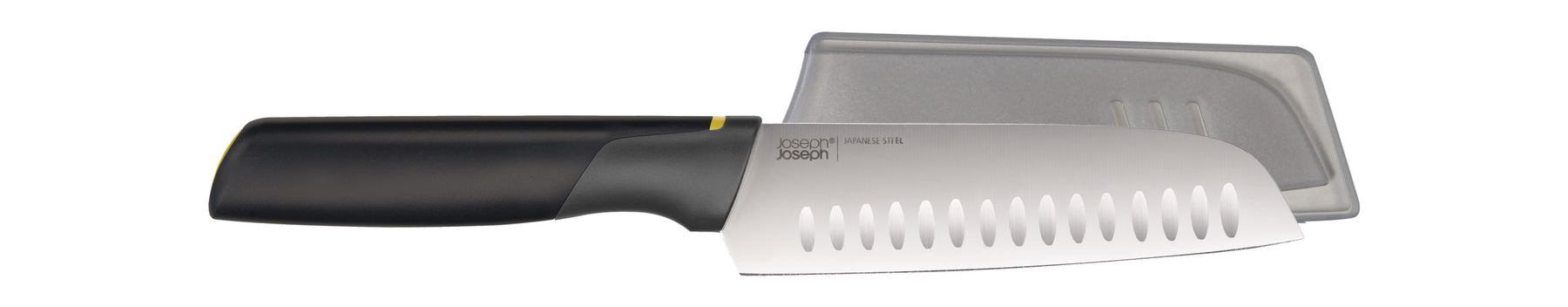 The Elevate™ range of kitchen tools is designed to improve hygiene and reduce mess. Each tool has an innovative weighted handle with an integrated tool rest, ensuring that the head or blade is always raised off the work surface, when placed down. This Santoku knife is made from Japanese stainless steel and has an ergonomic handle. It’s perfect for all types of preparation tasks such as slicing, dicing, and mincing and features indentations on the blade that help release sliced food more easily. It also comes with a protective sheath for safe storage.