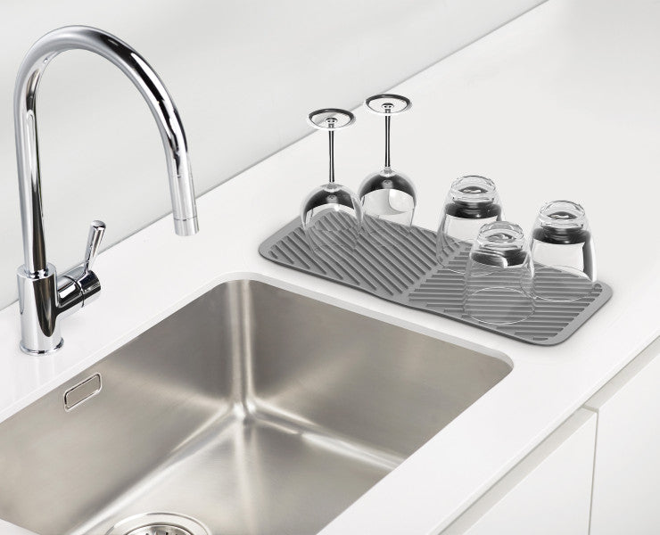 This handy drying mat from Joseph Joseph allows you to create extra draining space almost anywhere. Its soft rubber surface protects crockery and glassware whilst draining and its ribbed surface prevents water being trapped inside cups and helps channel excess water away. The folding design makes draining much easier.