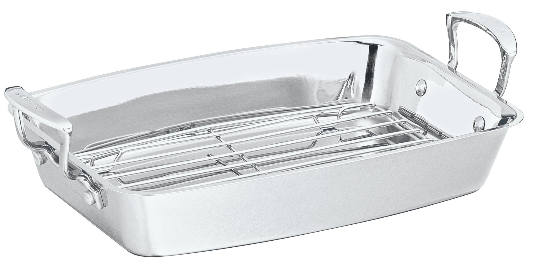 A roaster is a must for all cookware collections! The Impact roaster is one of SCANPAN's best selling items. Made from durable high quality stainless steel, this roaster comes with roasting rack with a handy internal size of 35cm x 24cm x 6cm (42cm x 26cm x 11cm including handles). Oven-safe to 250 Degrees Celcius.