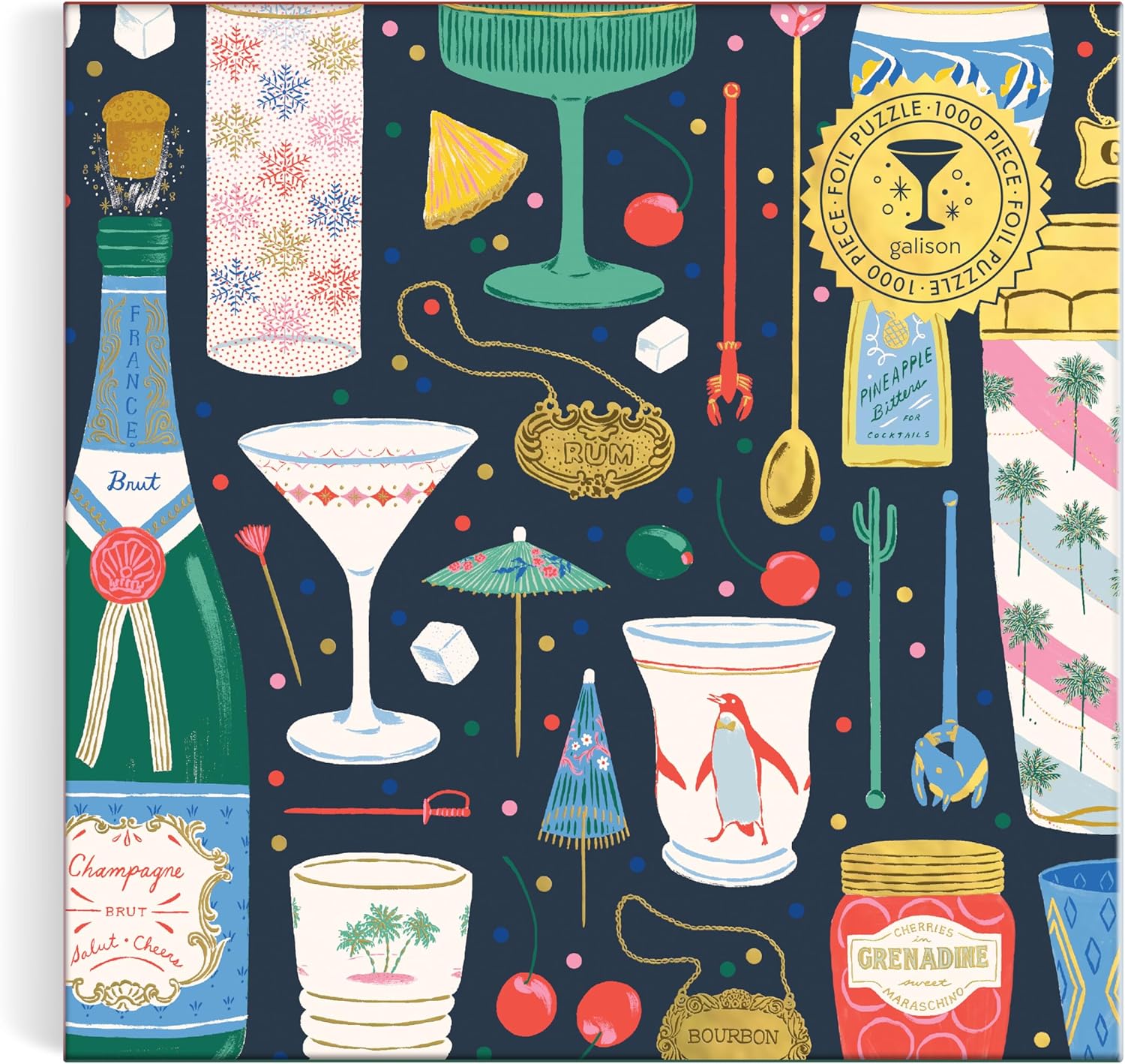This puzzle features a charming collage of colourful cocktails and drinks with gold-accented foil. Puzzle lovers will appreciate all the delightful details as they piece together the puzzle, creating a beautiful display that adds charm and holiday elegance to any room.