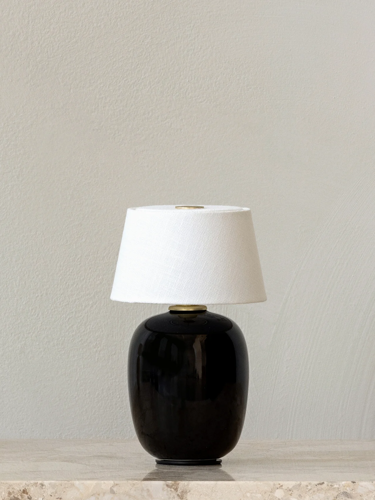 The Torso Portable Table Lamp by Krøyer-Sætter-Lassen is a miniature version of their popular full-size design of the same name, which takes its design cues from childhood homes filled with treasures shaped by the human hand. Petite and cosy, this diminutive design brings a sense of intimacy to tabletops, replacing the need for candles thanks to its soft, ambient light. It features a brass plated button on the linen canvas shade, enabling you to turn the light on and off at the tap of a finger.