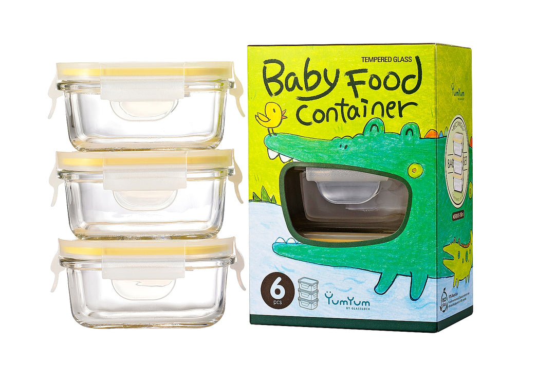 3 Pce Squ Baby Food Container Set:82x82x57mm/210ml