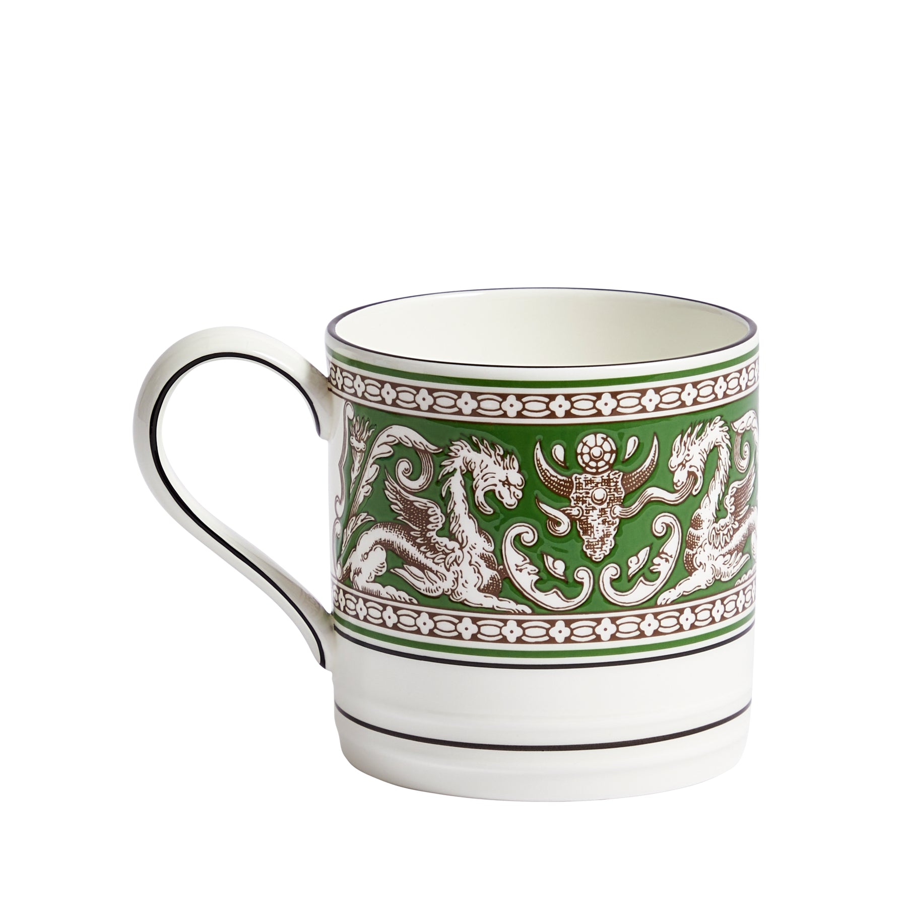 Enjoy your favourite hot beverage in this Florentine Verde Mug. The mug, expertly crafted from fine bone china, features the iconic Florentine pattern in a fresh verde colourway. It's a perfect blend of Wedgwood's rich history and contemporary design, making your morning coffee or evening tea an elegant affair.