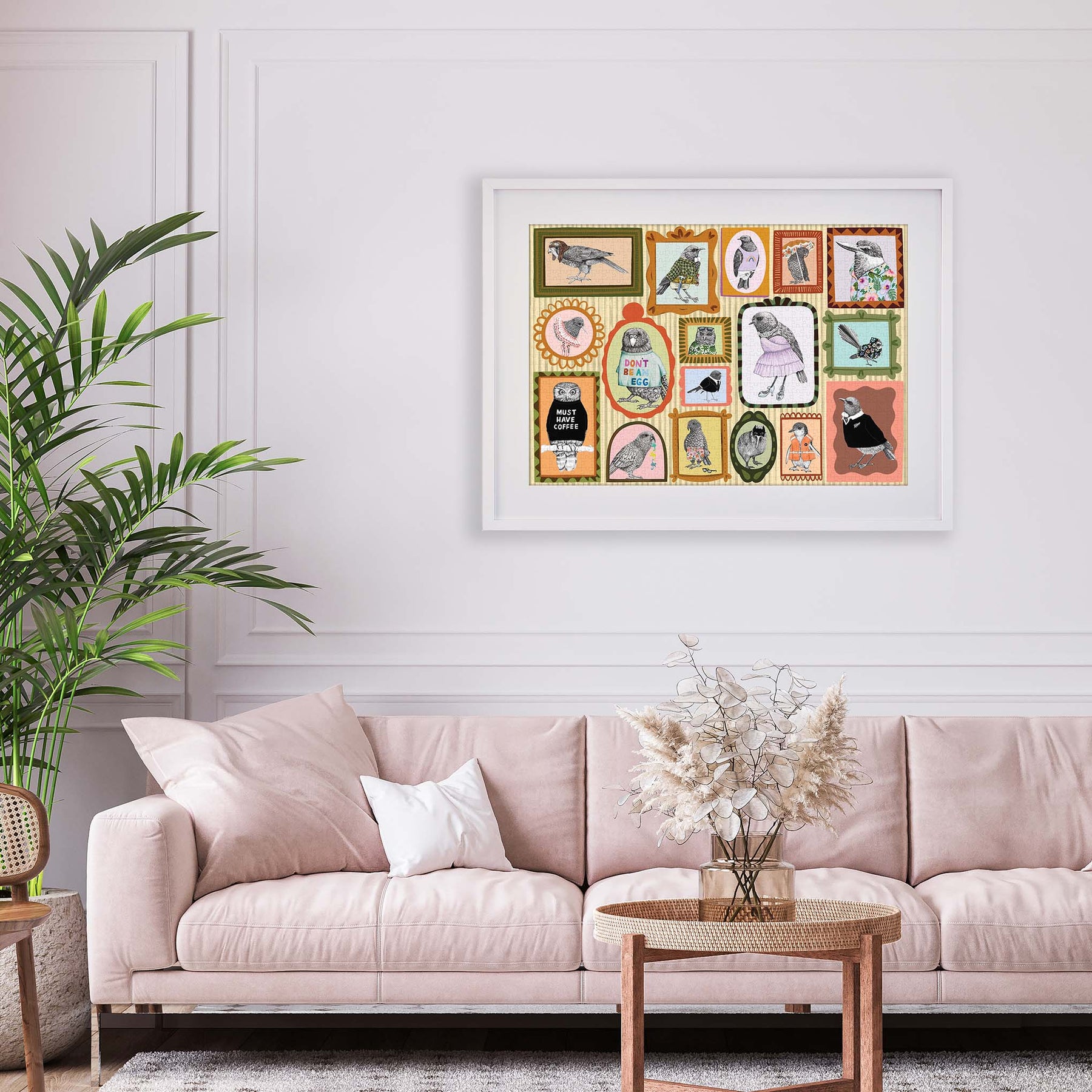 Krystal’s birds have been collated into this gallery wall art piece by artist Hope McConnell, Hope is the artist that created the Ladies Who Lunch puzzle design.