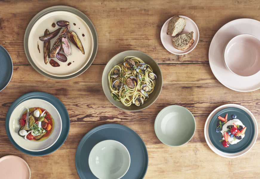 Our individual bowl has a natural, round shape without right angles, for a softly coloured table. Its shape allows you to serve your guests with salad, soup or dessert.