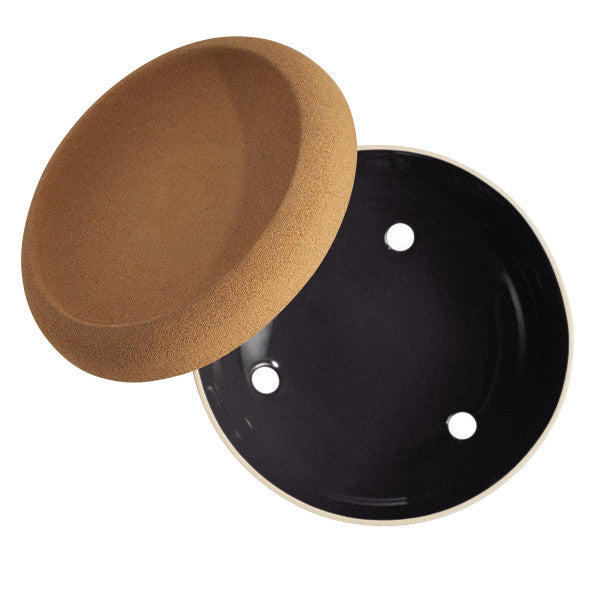 They perform on two levels. The cork lid serves as a fruit bowl, while the ceramic base offers a space for keeping onions, potatoes and other root vegetables fresh and out of the light.
