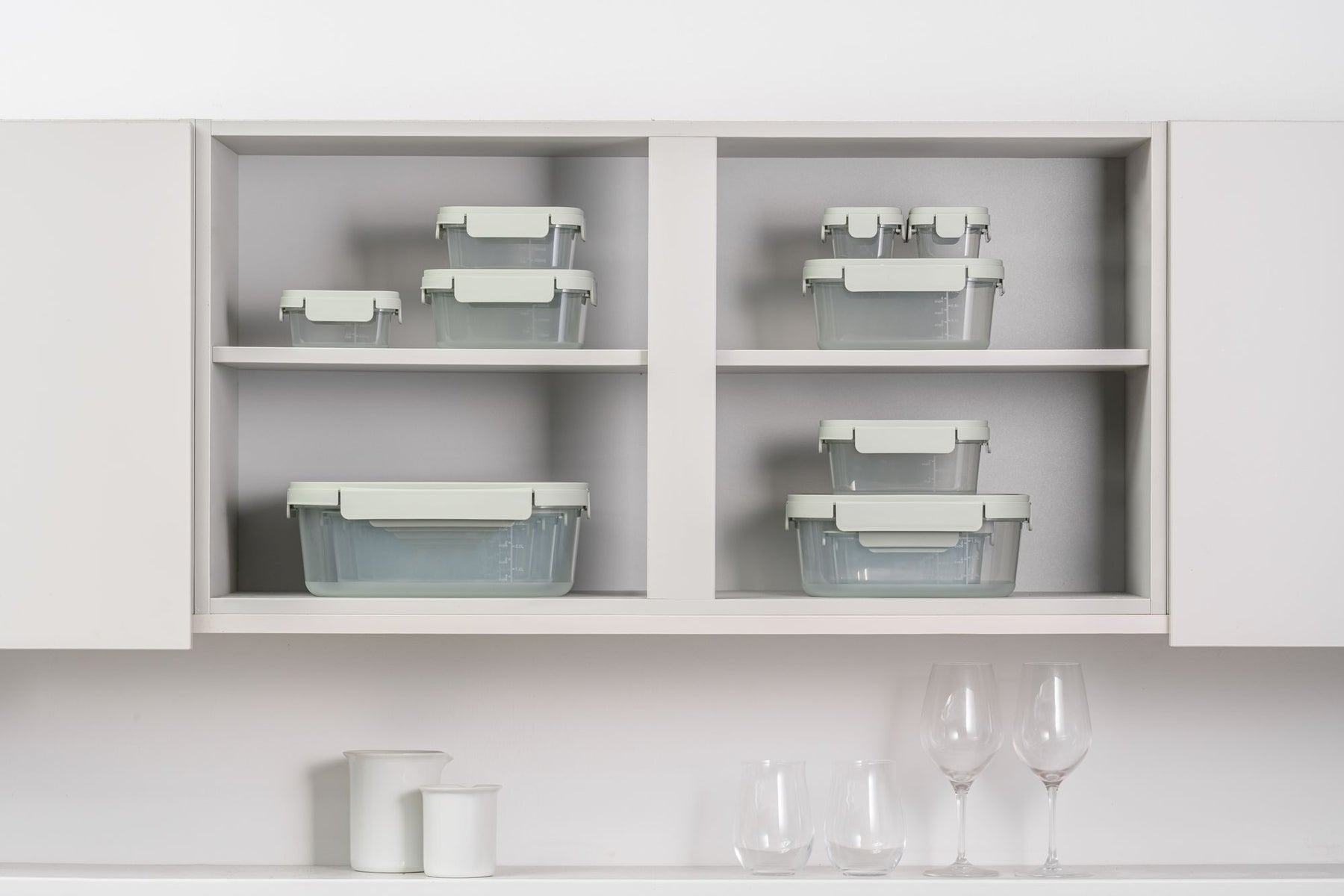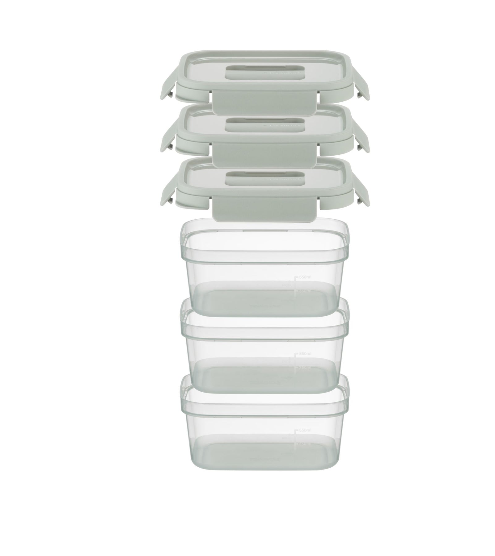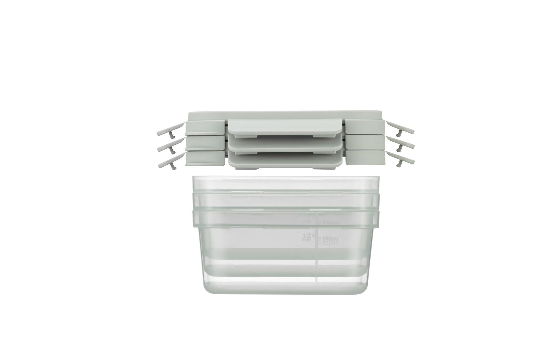 The Nestopia 3pc Rectangular Set features a nestable lid and body, an airtight four-side locking system, and a convenient volume indicator on the side. The lid and body have matching alphabet marks for easy alignment. It's designed for simplicity and perfect for organization and storage. The set is microwave, freezer, and dishwasher safe, as well as BPA-free. Set Includes - 3 x 500ml containers.